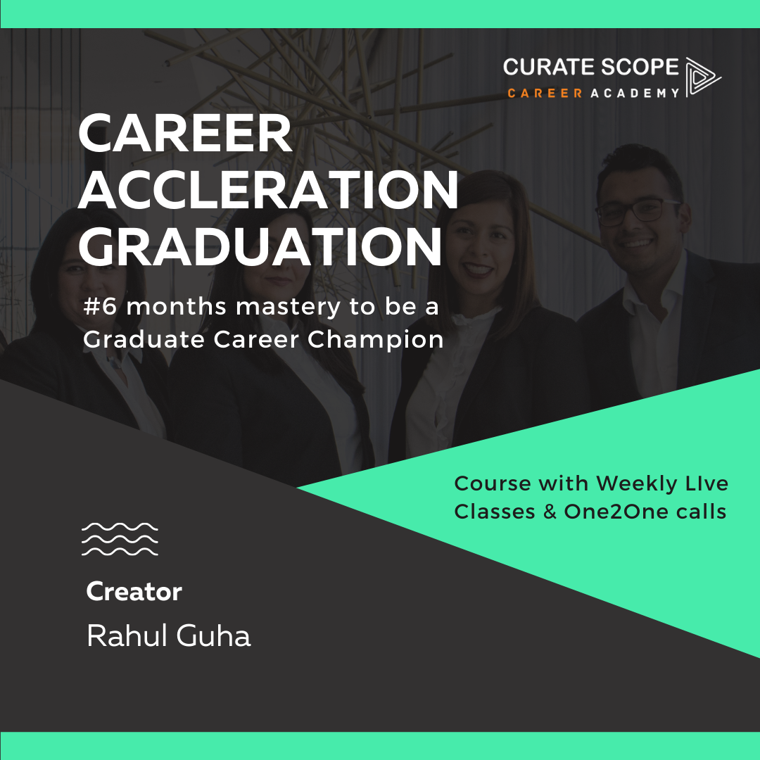 The Graduation Programme is designed to deep dive into key elements and master the science of career acceleration! Like any other higher study, one needs first learn and implement the broader elements before executing finer strategies!